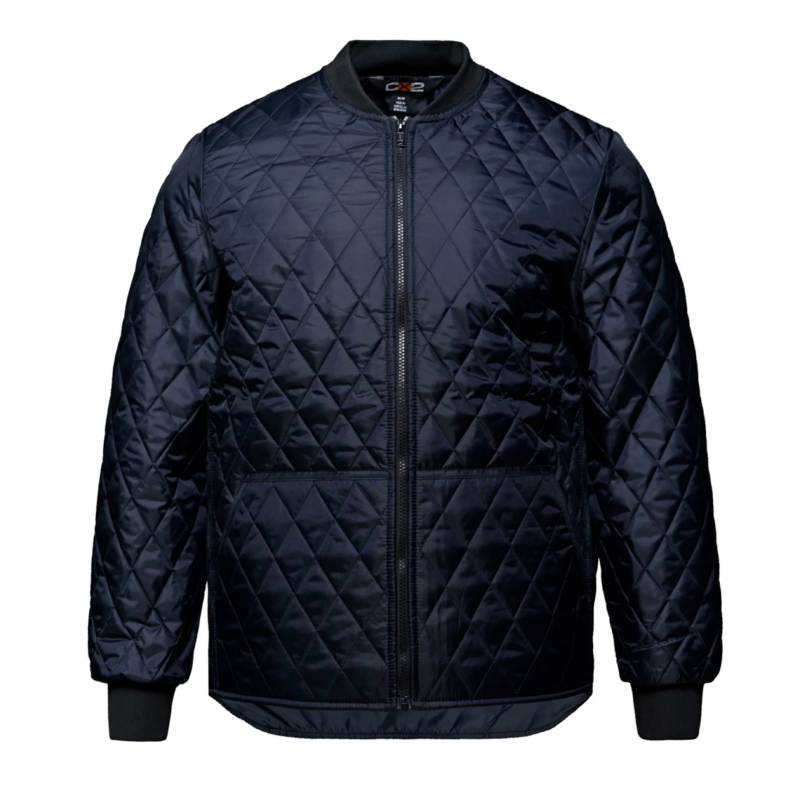 Quilted Freezer Jacket featuring two exterior side pockets and one inner patch pocket.