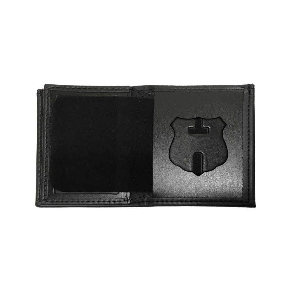 Hidden badge wallet with money pocket, 5 credit card slots and ID window.