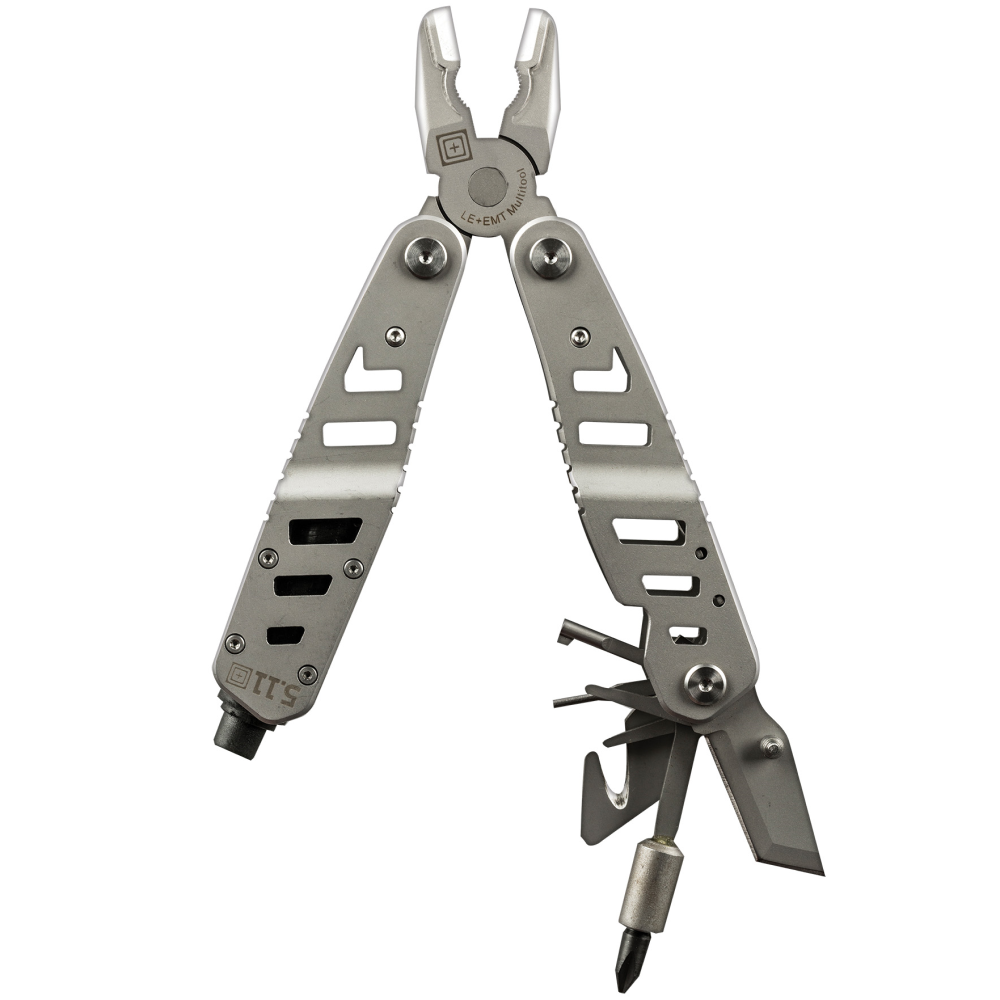 When seconds count, you need a reliable multi-tool that’s always on call but never gets in the way. The 5.11® LE EMT Multi-Tool is designed for optimal efficiency and functionality end-to-end. The Tanto knife blade is designed specifically for piercing hard materials. The seatbelt cutter with a pry bar and a spring-loaded glass breaker can expedite auto extractions and rescues. And with an oxygen wrench, two types of pliers a magnetic hex bit driver, and more, there’s almost nothing this multi-tool can’t handle.