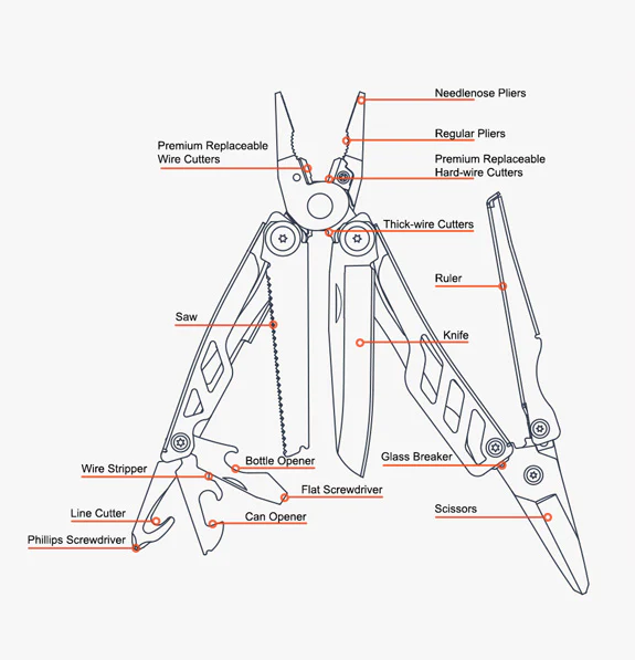The MT10 16-in-1 multi-pliers are made from high-carbon 30Cr13 stainless steel with high strength, hardness and durability.