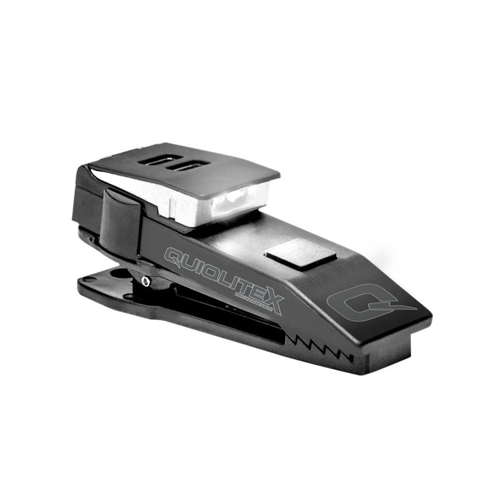 QuiqLitePro Tactical L.E.D. configuration is designed for tactical light applications without having to hold a flashlight in your hands. The first push of the On/Off button activates the red/blue L.E.D. at 10 lumens to help preserve your night vision and keep your keep your position concealed. Pro is also equipped with a 10-lumen white L.E.D. used for normal reading and writing when the amount of light output is not a concern. Pro is equipped with a 10-minute auto-off battery saving timer and continual Safety Strobe for situations when you need to be seen. Pro now includes the New “QuiqFlare” personal safety flare attachment!