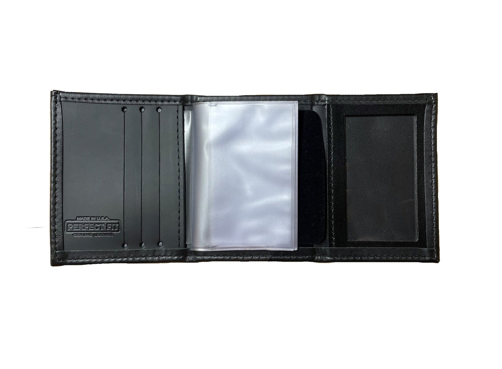 Tri-fold wallet with 5 credit card slots and single ID window.